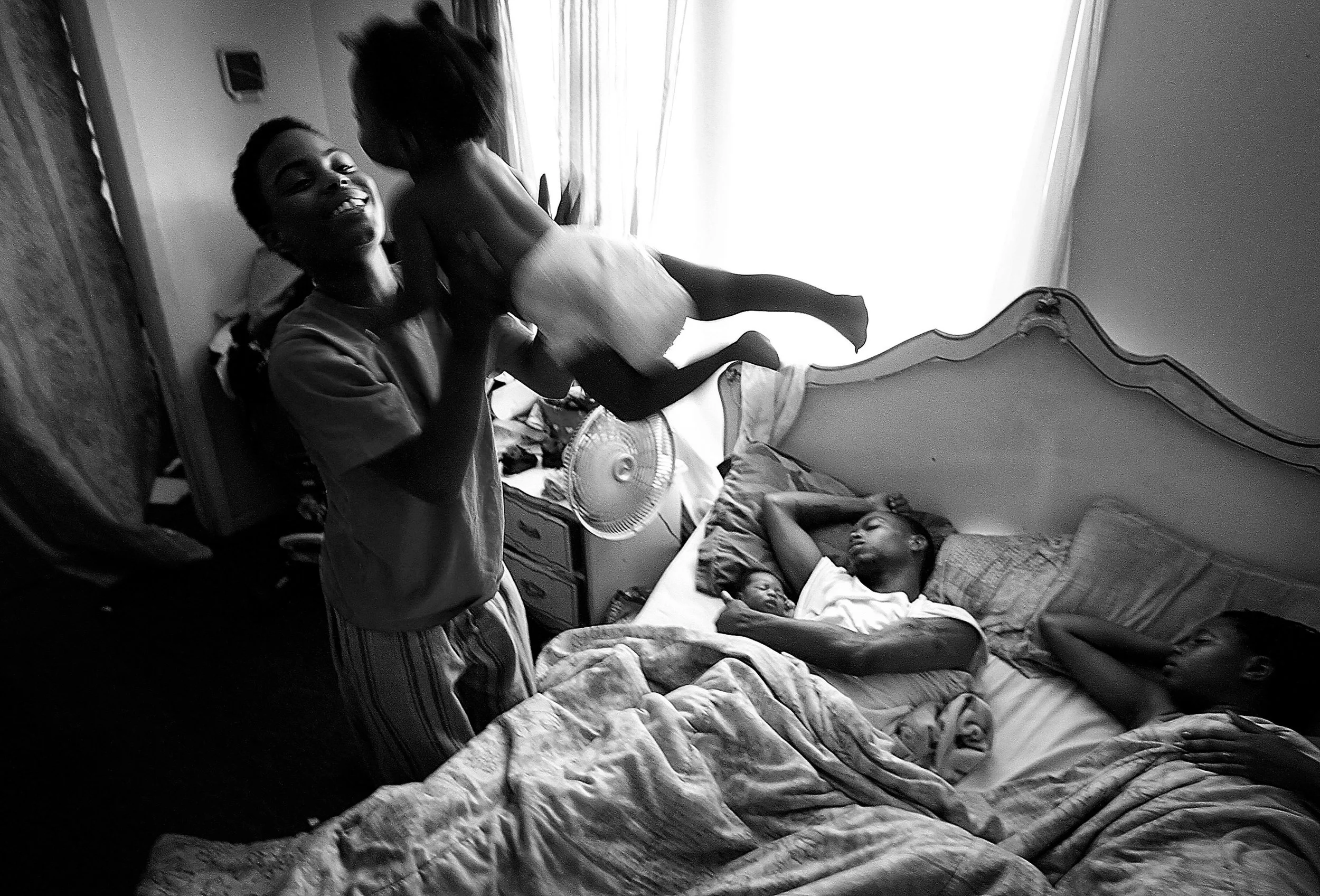 Cherry’s three-bedroom house is always full. Friends, neighbors, extended relatives come by to play cards, video games, to spend a couple nights, to smoke a little marijuana. Cherry sometimes shares a bed with as many as three people.