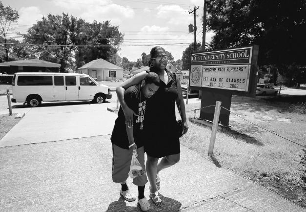 The first day of school at Douglass was chaos at Cherry’s house. She was mad that she didn’t have new shoes. She busted a button on her uniform shorts. Ms. Joyce was late picking her up to register. But she was determined to make a good impression.