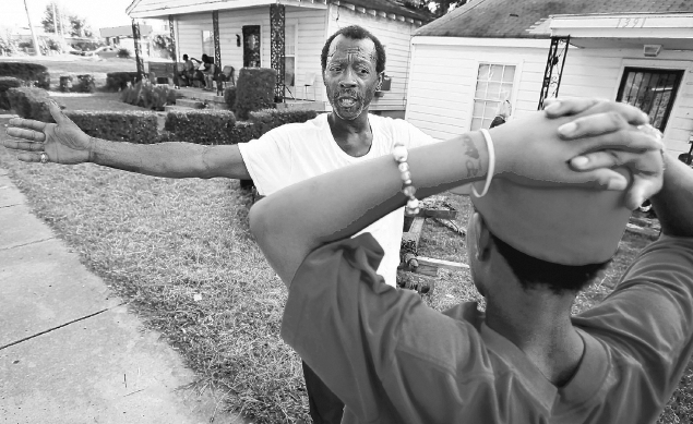Voice of experience: Michael Jamerson, who lives across the street from Cherry on Davis, lectures her on staying out of trouble. Just days earlier, Jamerson’s son was fatally stabbed. “She's gotta sit down and think and tell herself to put aside everything besides her education,” Jamerson said.