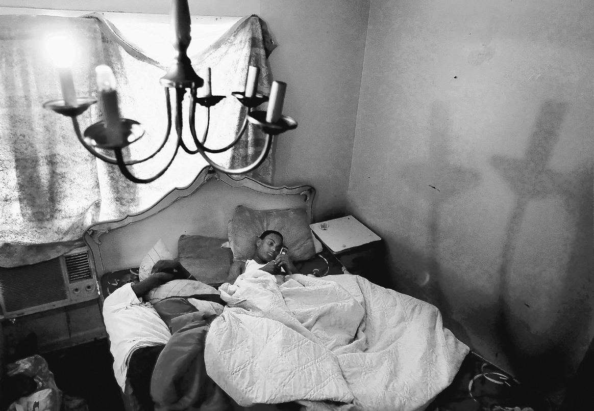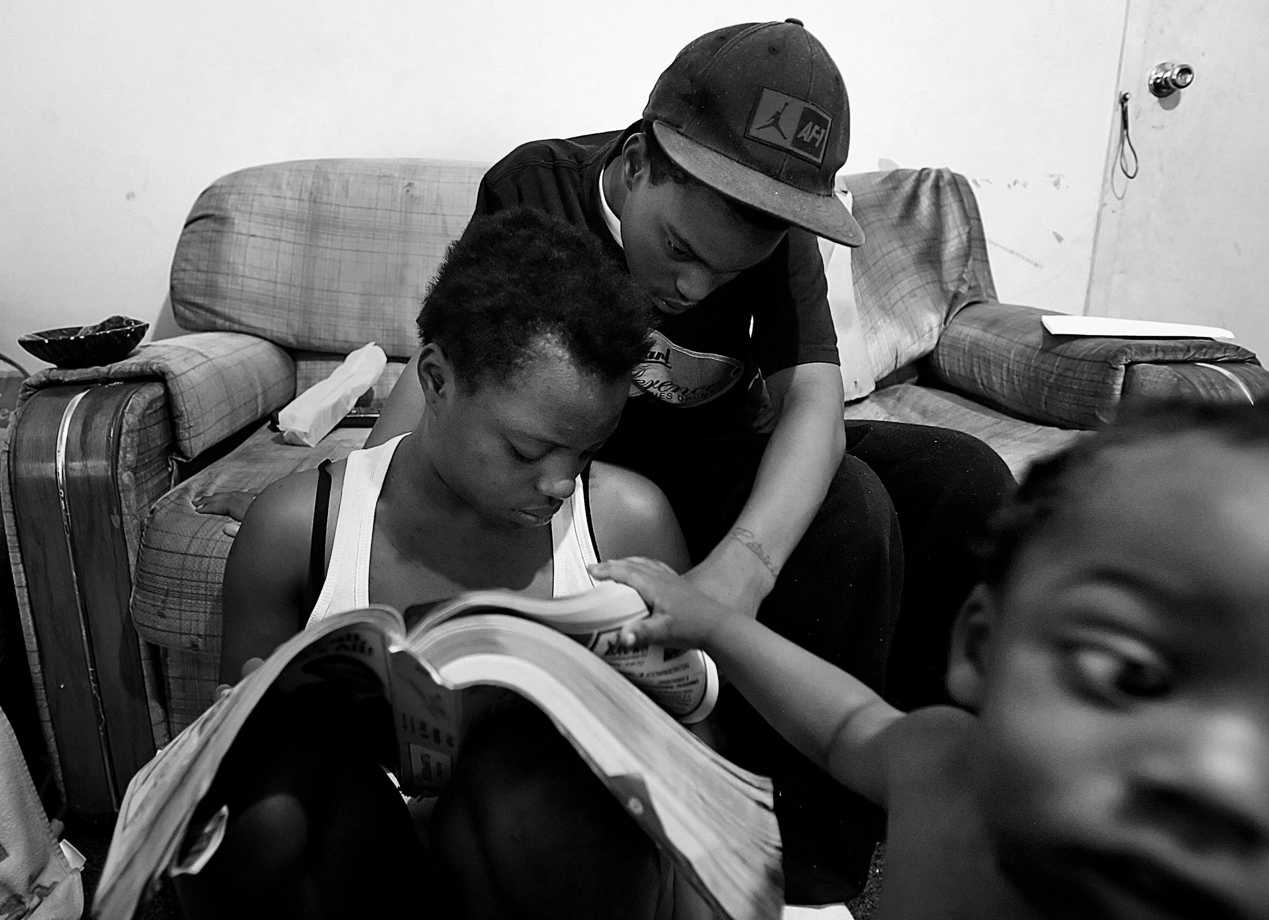 Hard life, firm resolve: Cherry texts a friend as she and her younger brother Devonte share a place to nap at their house. “I’ve seen all kinds of kids who said they was gonna make it, and they didn’t,” Cherry said. “But I’m gonna make it.”