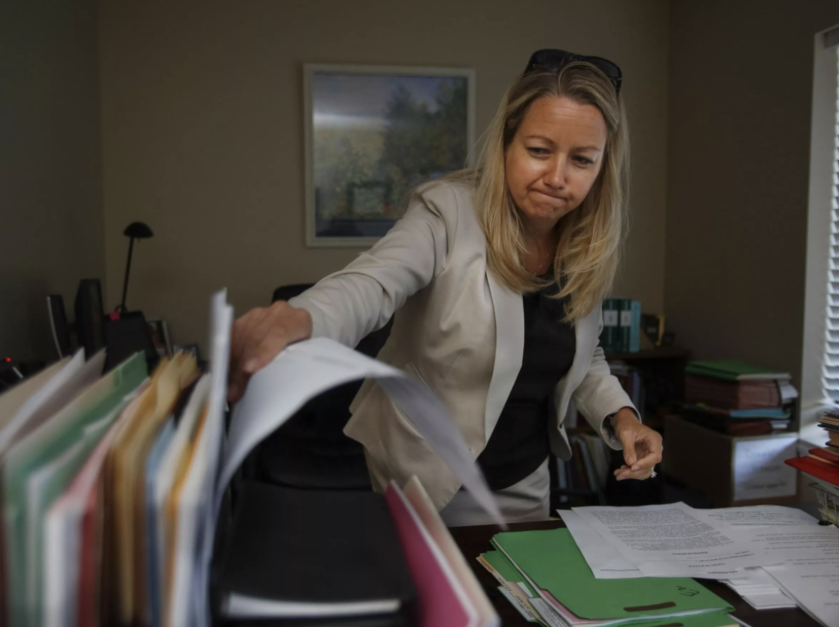 Assistant Public Advocate Melanie Lowe starts a recent Wednesday by pulling all of the cases she will be working on that day. Aug. 13, 2015