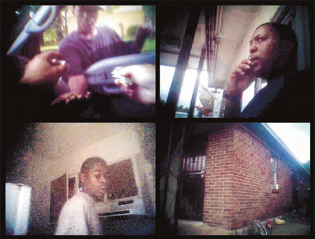 Surveillance photos: Crack cocaine buys by undercover MPD officer UC 1335 are seen in these police surveillance photos. Top left: UC 1335 exchanges money for crack inside his truck. Top right: UC 1335 approaches this man at a gas station and asks where he can buy $10 worth of crack. The man makes a phone call. Bottom left: This man sold crack to the undercover officer. Bottom right: Numerous transactions took place inside this house on Medley.