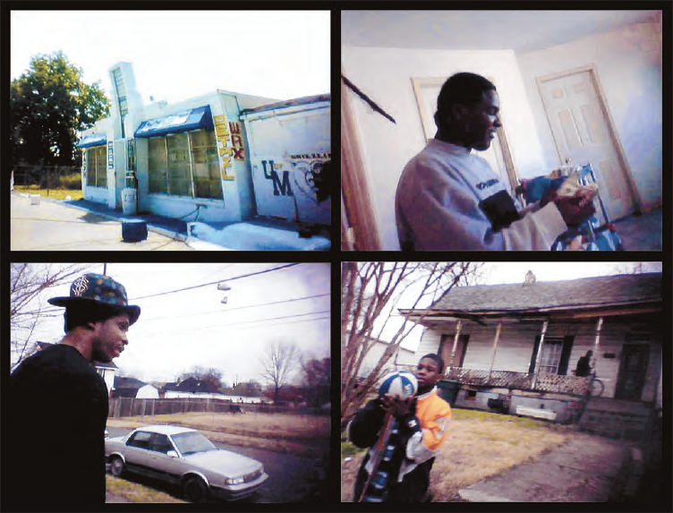 Operation Wash Out: Police officer Michael Gibbs posed as Michael Antonio Clark or “Big Mac” and ran a car wash in South Memphis that doubled as a drug market. That operation sent 47 defendants to jail for a total of 229 years. Top left: The car wash operated by Gibbs. Top right: A man counts money inside the car wash after he sold crack to the undercover officer. Bottom left: Shoes hang on an electrical line in a neighborhood where Gibbs bought drugs. The shoes signify gang territory. Bottom right: This is a house where Gibbs bought crack.